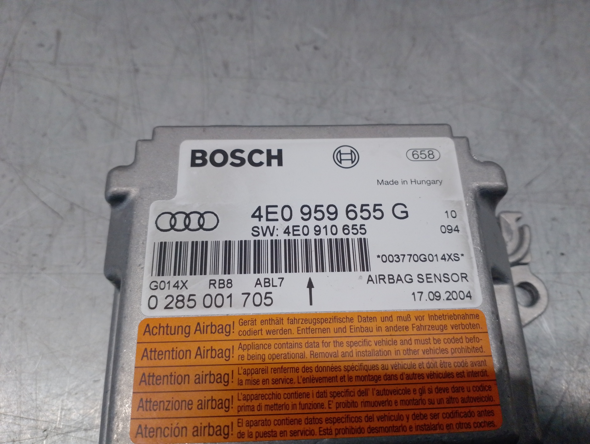CENTRALITA AIRBAG AUDI A8 (4E2) 4E0959655G | 0285001705 | BOSCH Référence TELEPECAS : 12024777 11 Mar 2024 |